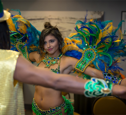 We will work with you to design any scale of production from just a few dancers to a full ensemble, whether we’re performing on stage or simply greeting your guests, we are there to bring the “magic of Brazil” to your event.